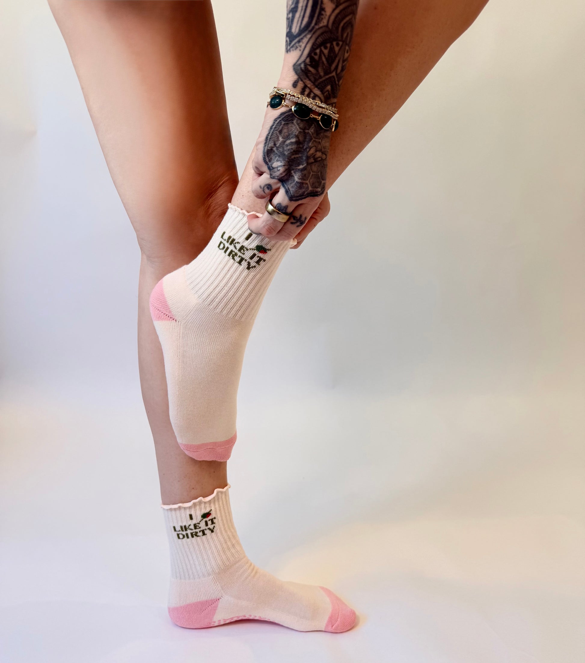Featuring a non-slip blush grip sole for stability and control, these socks help you feel secure through every movement—without sacrificing comfort. The breathable ribbed knit hugs the foot just right, while the neutral palette pairs seamlessly with any studio look.